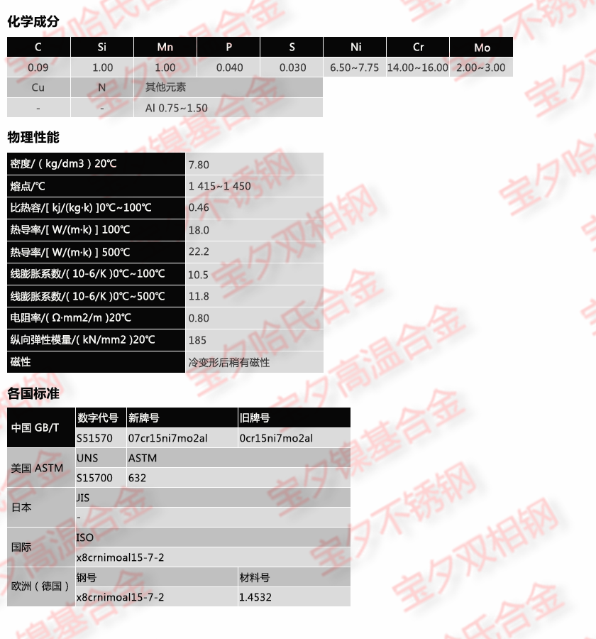 宝钢07Cr15Ni7Mo2Al,太钢07Cr15Ni7Mo2Al,新日铁07Cr15Ni7Mo2Al,日本冶金07Cr15Ni7Mo2Al,蒂森克虏伯07Cr15Ni7Mo2Al,奥托昆普07Cr15Ni7Mo2Al,日本神户07Cr15Ni7Mo2Al
