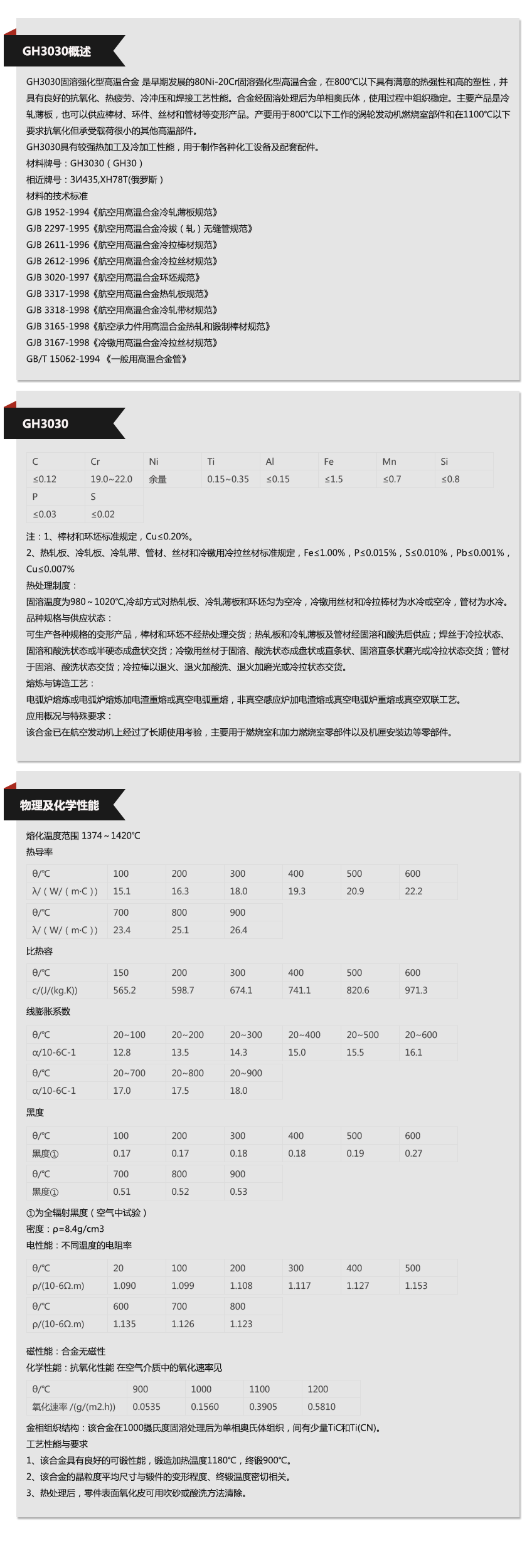 宝钢GH3030,太钢GH3030,新日铁GH3030,日本冶金GH3030,蒂森克虏伯GH3030,奥托昆普GH3030,日本神户GH3030