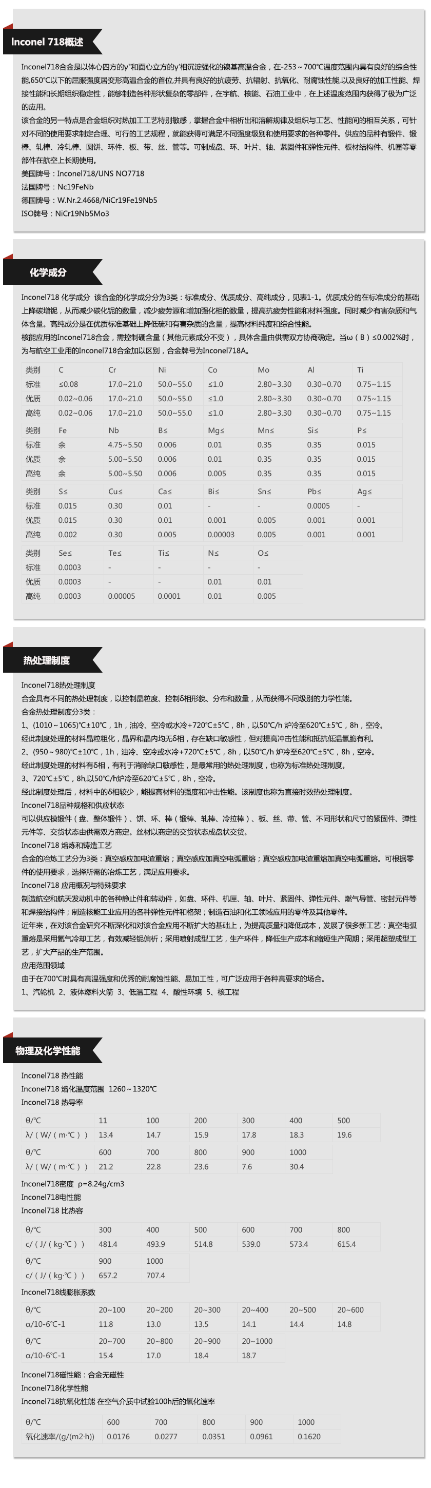 上海欧萨卡集团—lnconel 718材质单,上海欧萨卡集团—lnconel 718成分表,上海欧萨卡集团—lnconel 718是什么材料