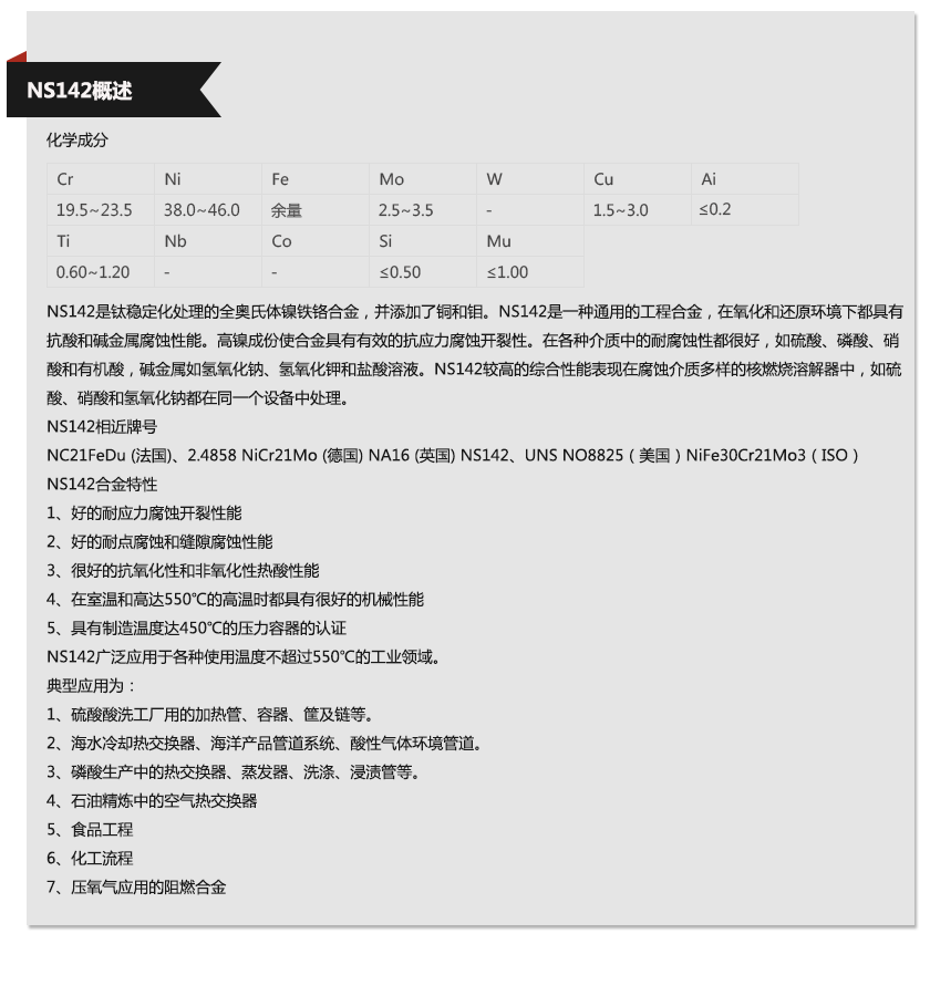 上海欧萨卡集团—NS142材质单,上海欧萨卡集团—NS142成分表,上海欧萨卡集团—NS142是什么材料