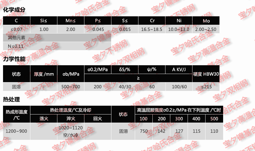 宝钢X5CrNiMo 17-12-2,太钢X5CrNiMo 17-12-2,新日铁X5CrNiMo 17-12-2,日本冶金X5CrNiMo 17-12-2,蒂森克虏伯X5CrNiMo 17-12-2,奥托昆普X5CrNiMo 17-12-2,日本神户X5CrNiMo 17-12-2