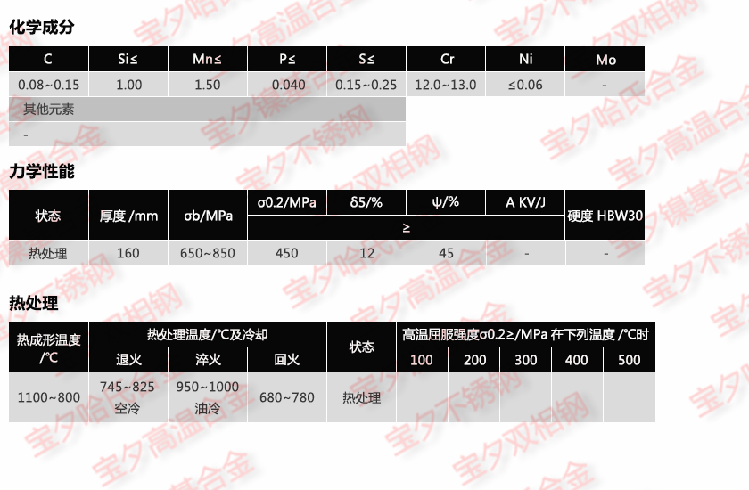 宝钢1.4005,太钢1.4005,新日铁1.4005,日本冶金1.4005,蒂森克虏伯1.4005,奥托昆普1.4005,日本神户1.4005